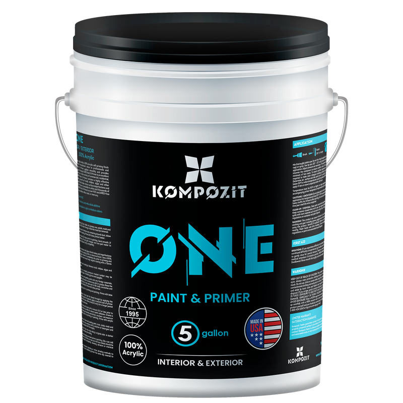 Kompozit ONE Paint & Primer es un revestimiento 100 % acrílico de alta calidad apto tanto para uso interior como exterior. Ofrece una excelente adherencia, durabilidad y cobertura.