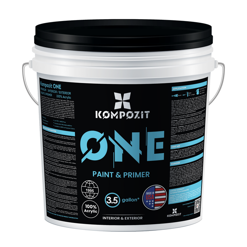 Kompozit ONE Paint & Primer es un revestimiento 100 % acrílico de alta calidad apto tanto para uso interior como exterior. Ofrece una excelente adherencia, durabilidad y cobertura.